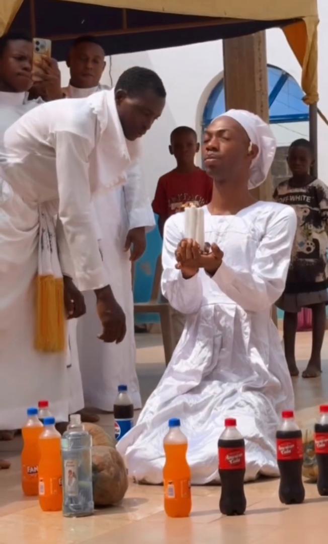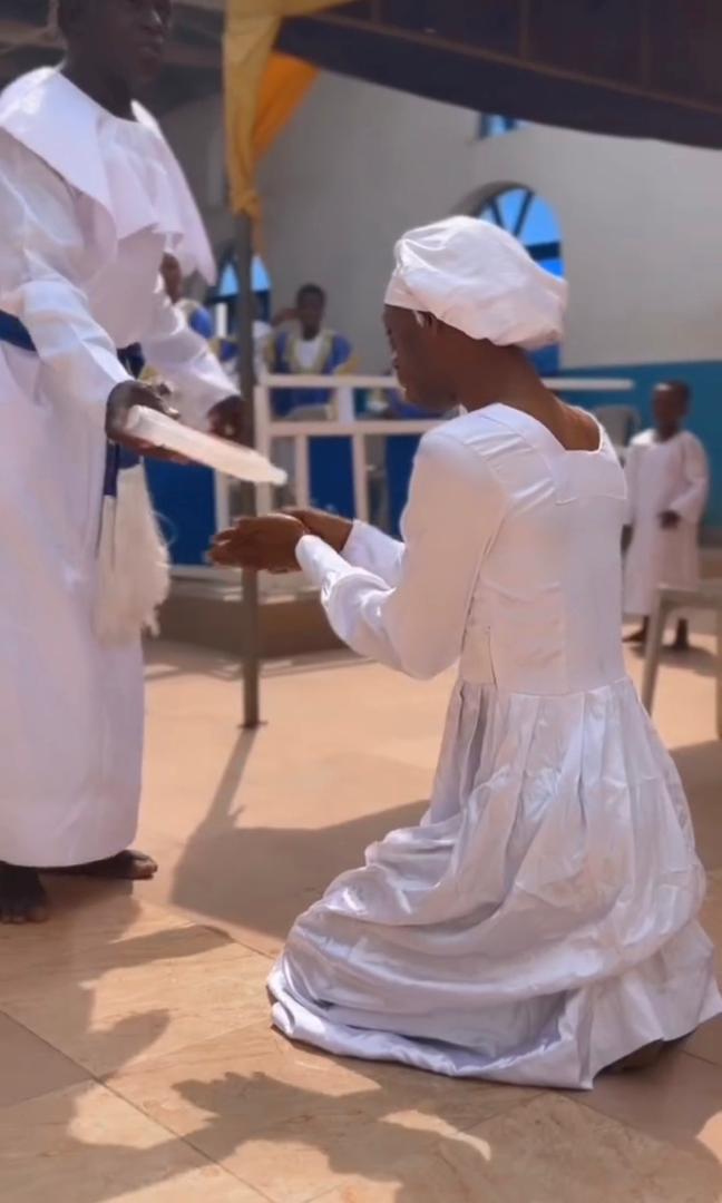 Some Celestial Church members vented on social media after content creator, James Brown, shared a video of himself inside a celestial church, receiving prayers while dressed in a female attire. The church members say they have a particular outfit they wear which is called a Sutanna which has a male and female type. James wore the one meant for women which comes with a beret. James had shared the video showing the Celestial church prophet praying for him and casting away evils from his life. _1769967500.jpeg)
